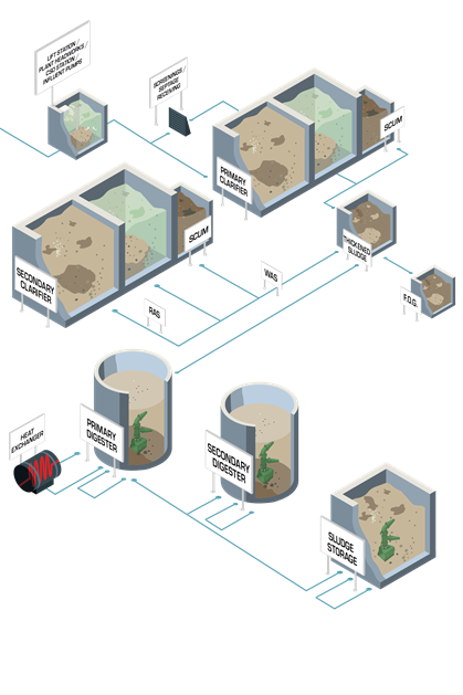 MSmachine Pumps effectively mix digester sludge, replacing gas, draft tube, submersible prop, or other pump mixing systems, while increasing digester efficiency by continuously chopping solids without the need for expensive pre-grinders or comminutors. MSmachine's 8"- 16" pumps produce volumes up to 8000 GPM.